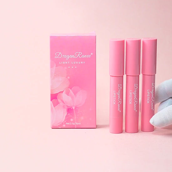 Dragon Ranee Velvet Crayon Case Lipstick Soft Matte Three Flower Nude Shades Set